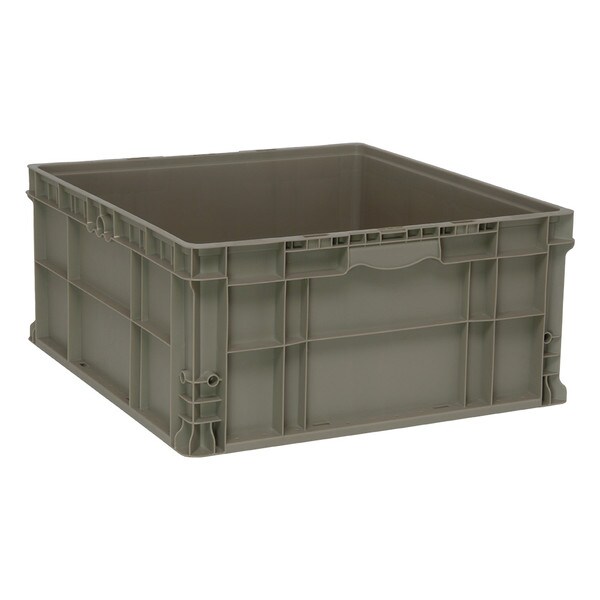 - Straight wall design allows for modular stacking of all sizes on standard pallet.